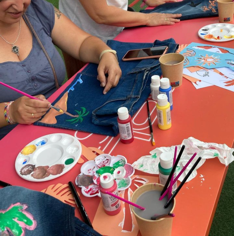 Trae tu prenda denim del armario y dale un nuevo aire renovado a través del arte y la creatividad mientras te tomas un vermú, café, té o infu con mi atención personalizada.